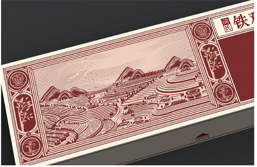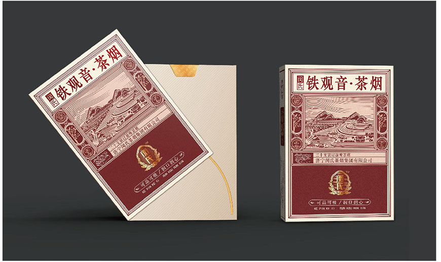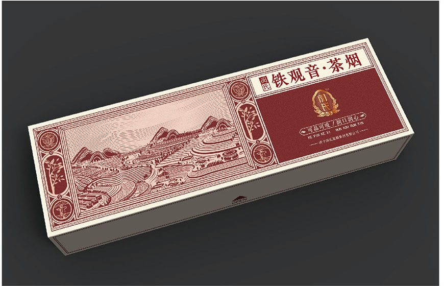 產(chǎn)品添加茶元素,在視覺設(shè)計(jì)以天然茶田為主要元素,傳達(dá)綠色生態(tài)的理念,包裝形式上采用煙包側(cè)滑盒型,在煙草品類里開辟出新興市場,茶療戒煙——有效降低傳統(tǒng)卷煙對身體危害。